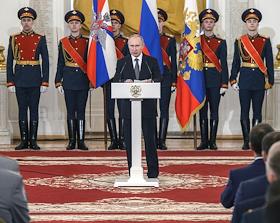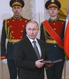 Церемония вручения государственных наград в День защитника Отечества в Кремле. Президент России Владимир Путин во время церемонии.