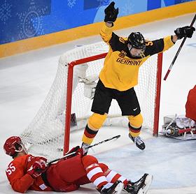 XXIII Зимние Олимпийские игры в Пхенчхане. Хоккей. Мужчины. Финал. Матч между командами России и Германии (4:3) прошел на стадионе Каннын-центр. Немецкий хоккеист Данни аус ден Биркен во время матча.