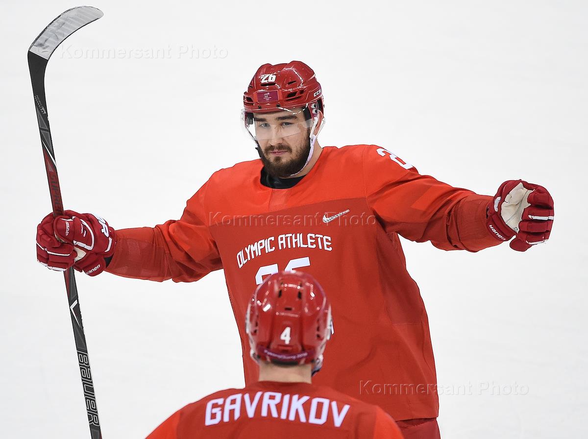 XXIII Зимние Олимпийские игры в Пхенчхане. Финальный матч по хоккею среди мужчин между сборной Германии и командой Олимпийских спортсменов из России (ОСР). Игрок команды ОСР Никита Гусев во время матча.