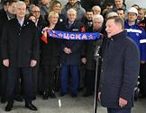 Церемония открытия станции "ЦСКА" первого участка Большой кольцевой линии московского метрополитена. Мэр Москвы Сергей Собянин (в центре) во время церемонии.