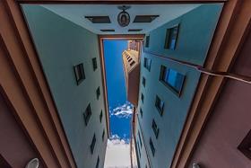 Жанровая фотография. Строительство и производство. Отражение памятника Петру Первому в окне дома.