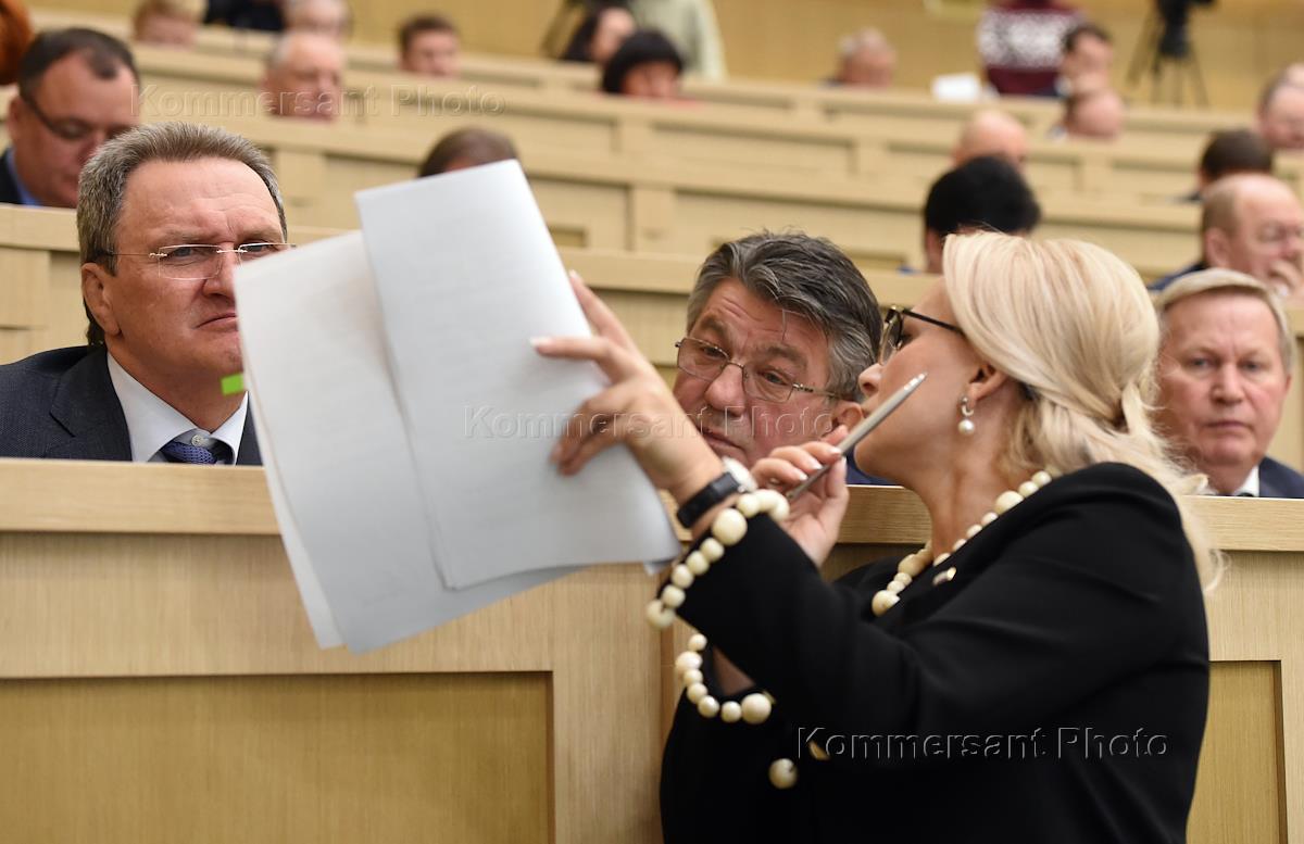 Пленарное заседание Совета Федерации (СФ) России. Председатель СФ России Валентина Матвиенко (справа) во время заседания.