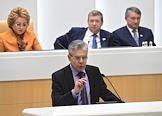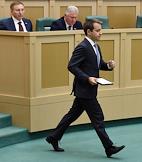 Пленарное заседание Совета Федерации (СФ) России. Министр связи и массовых коммуникаций России Николай Никифоров (справа) во время заседания.