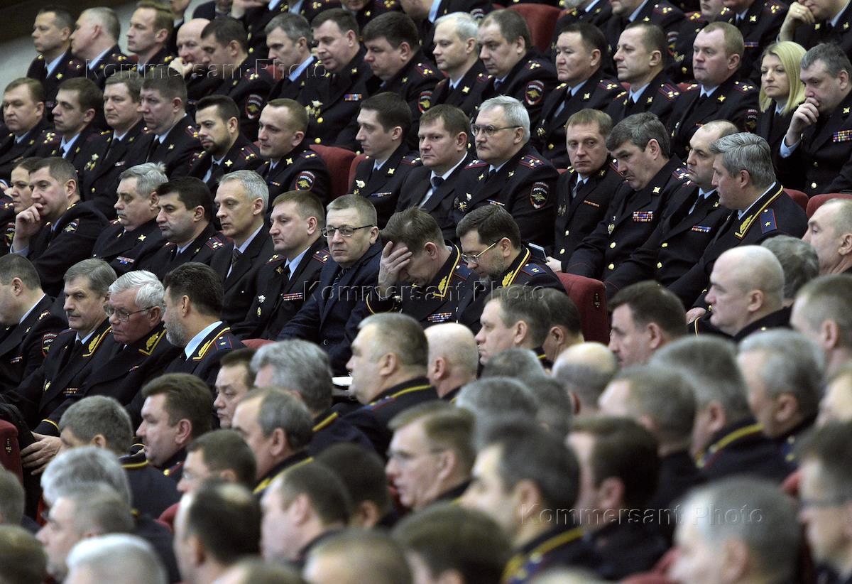 Коллегия МВД с участием президента России Владимира Путина в здании Министерства внутренних дел России.