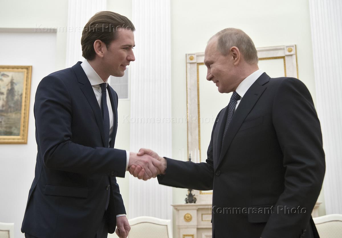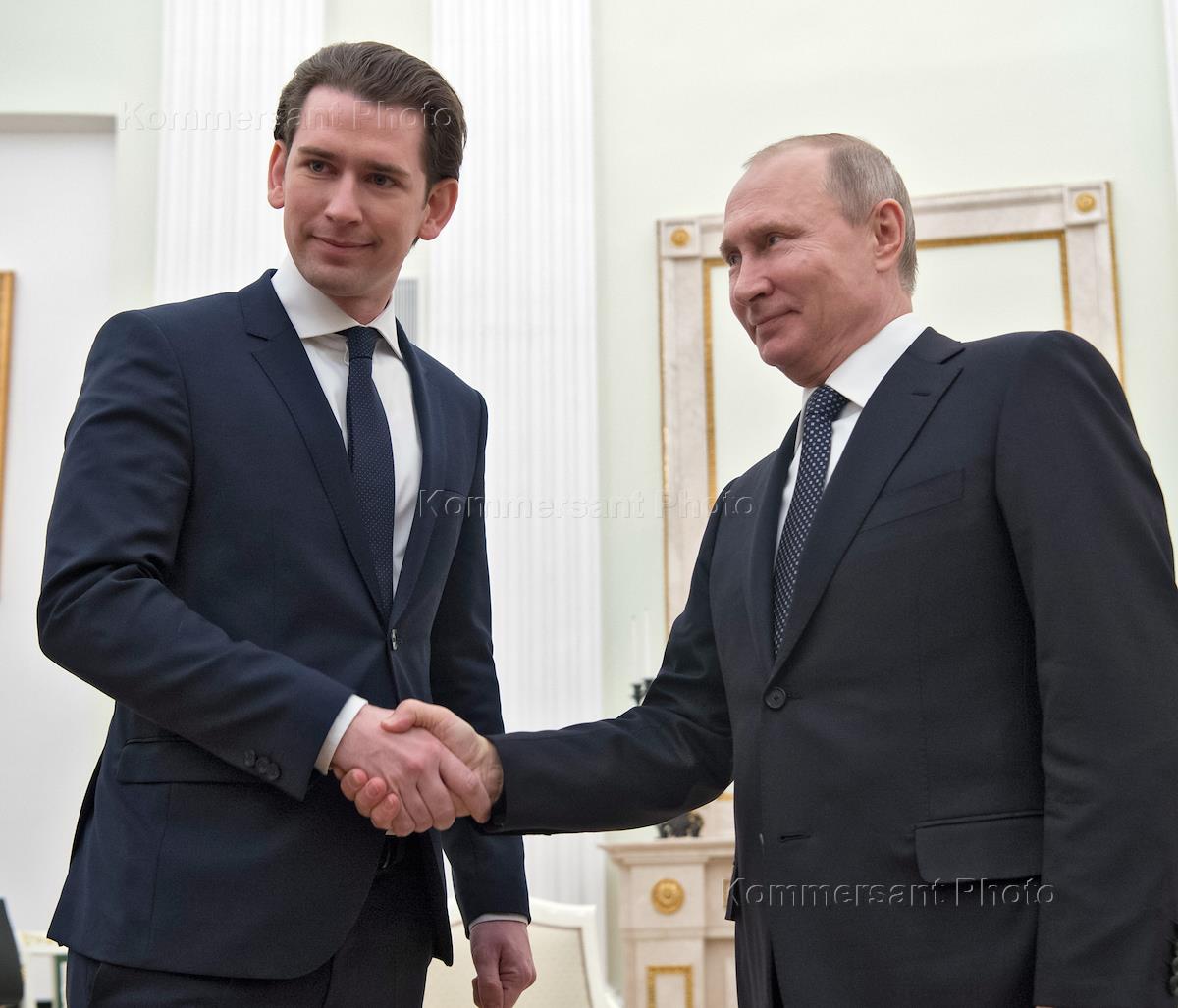 Президент России Владимир Путин (справа) и Федеральный канцлер Австрии Себастьян Курц (слева) во время встречи в Кремле.