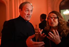 Предпремьерный показ фильма Алексея Германа "Довлатов" прошел в Мраморном дворце Государственного Русского музея. Режиссер Алексей Герман (слева) перед началом показа.