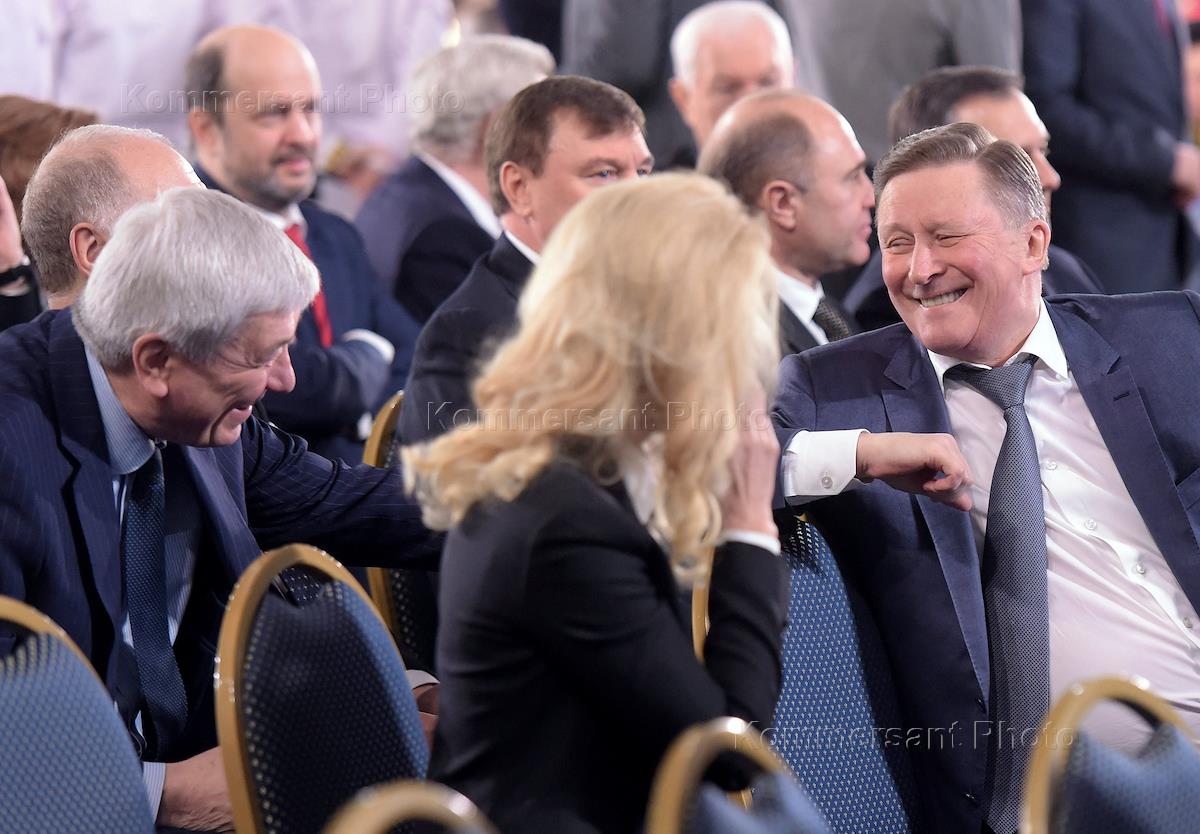 Ежегодное Послание президента России Владимира Путина Федеральному Собранию прошло в Центральном выставочном зале (ЦВЗ) "Манеж". Специальный представитель президента России по вопросам природоохранной деятельности, экологии и транспорта Сергей Иванов (справа) перед оглашением Послания.