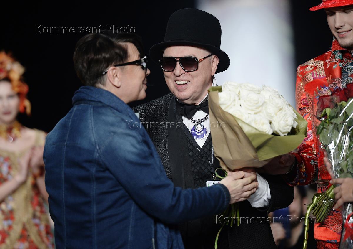Неделя моды Mercedes-Benz Fashion Week Russia (сезон осень-зима 2018-2019) прошла в ЦВЗ "Манеж". Модельеры Вячеслав Зайцев (справа) и Валентин Юдашкин (слева) во время показа новой коллекции модельера Вячеслава Зайцева.