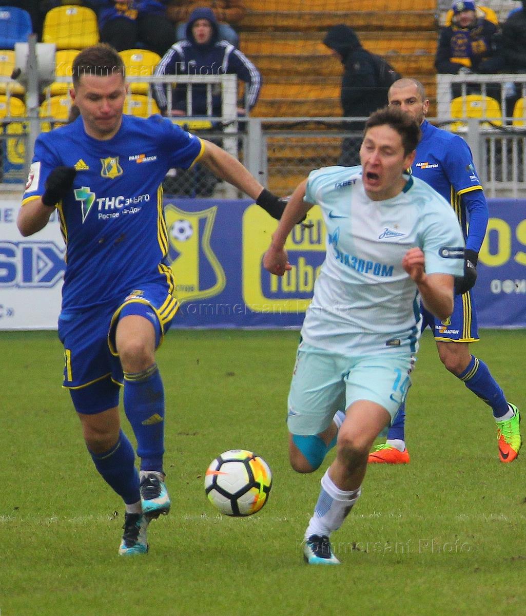 РОСГОССТРАХ Чемпионат России по футболу 2017/2018. 22-й тур. Матч между командами ФК "Ростов" (Ростов на Дону) и ФК "Зенит" (Санкт-Петербург) на стадионе "Олимп-2".