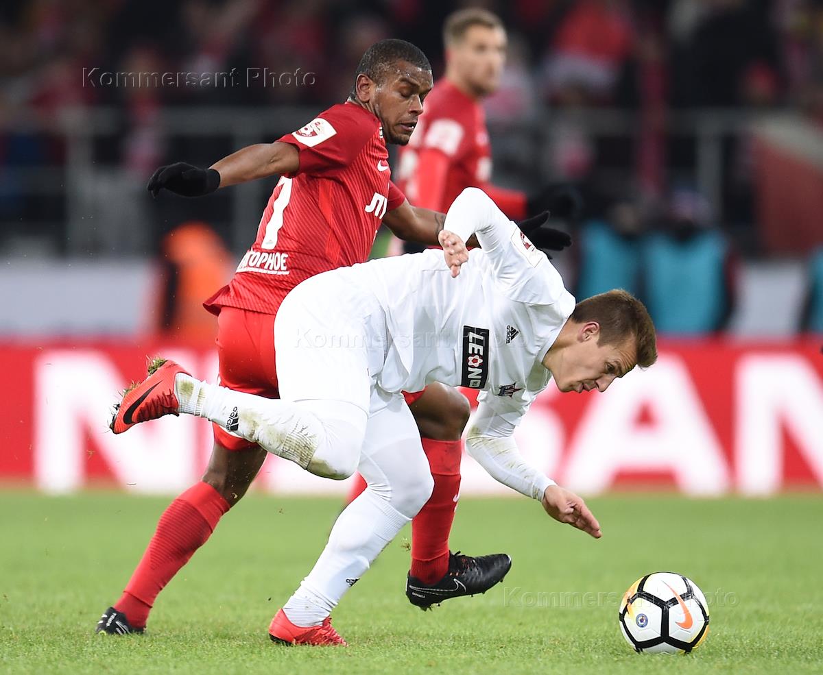 РОСГОССТРАХ Чемпионат России по футболу 2017/2018. 22-й тур. Матч между командами "Спартак" (Москва) и "СКА-Хабаровск" (Хабаровск) прошел на стадионе "Открытие Арена". Игрок команды "Спартак" Квинси Промес (справа) во время матча.