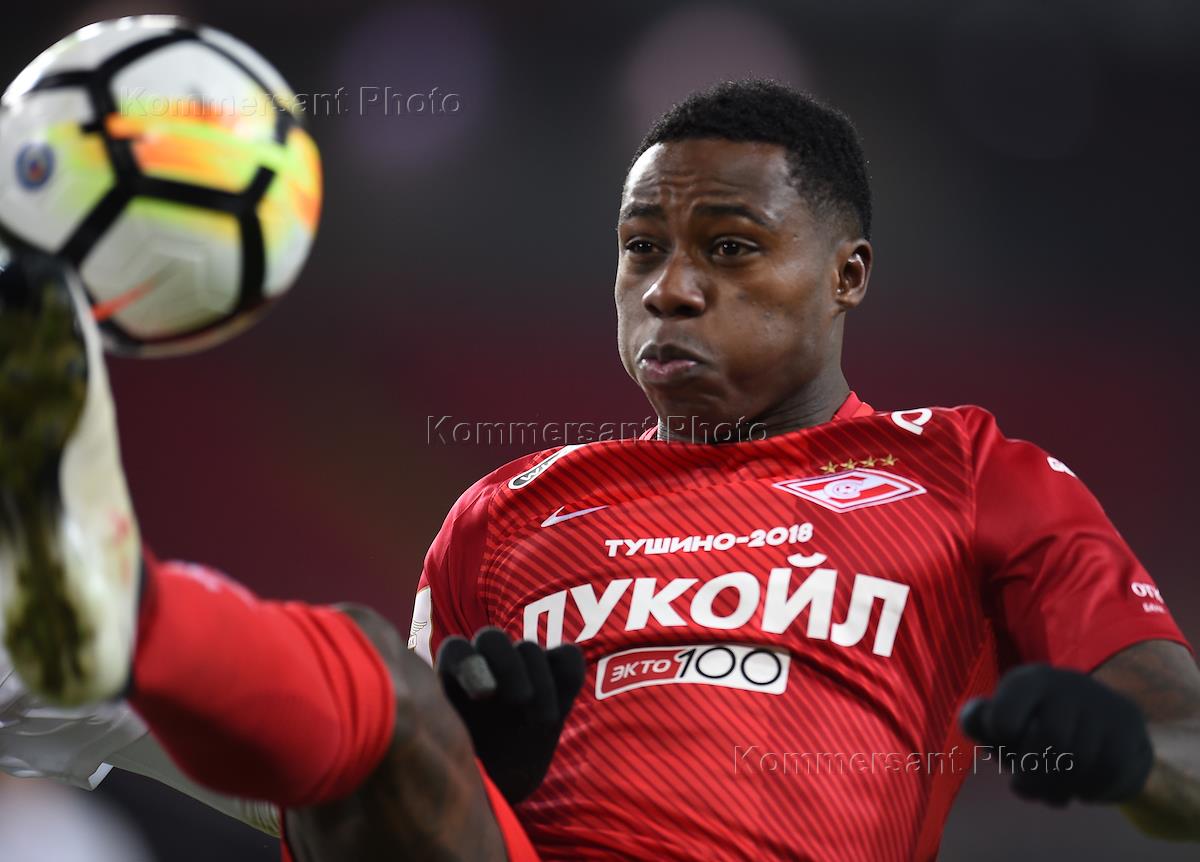 РОСГОССТРАХ Чемпионат России по футболу 2017/2018. 22-й тур. Матч между командами "Спартак" (Москва) и "СКА-Хабаровск" (Хабаровск) прошел на стадионе "Открытие Арена". Игрок команды "Спартак" Квинси Промес (справа) во время матча.