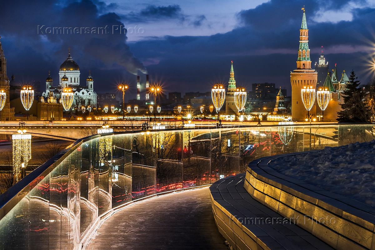 Views of Moscow. Zaryadye Park. The glass bridge over the Moscow River.