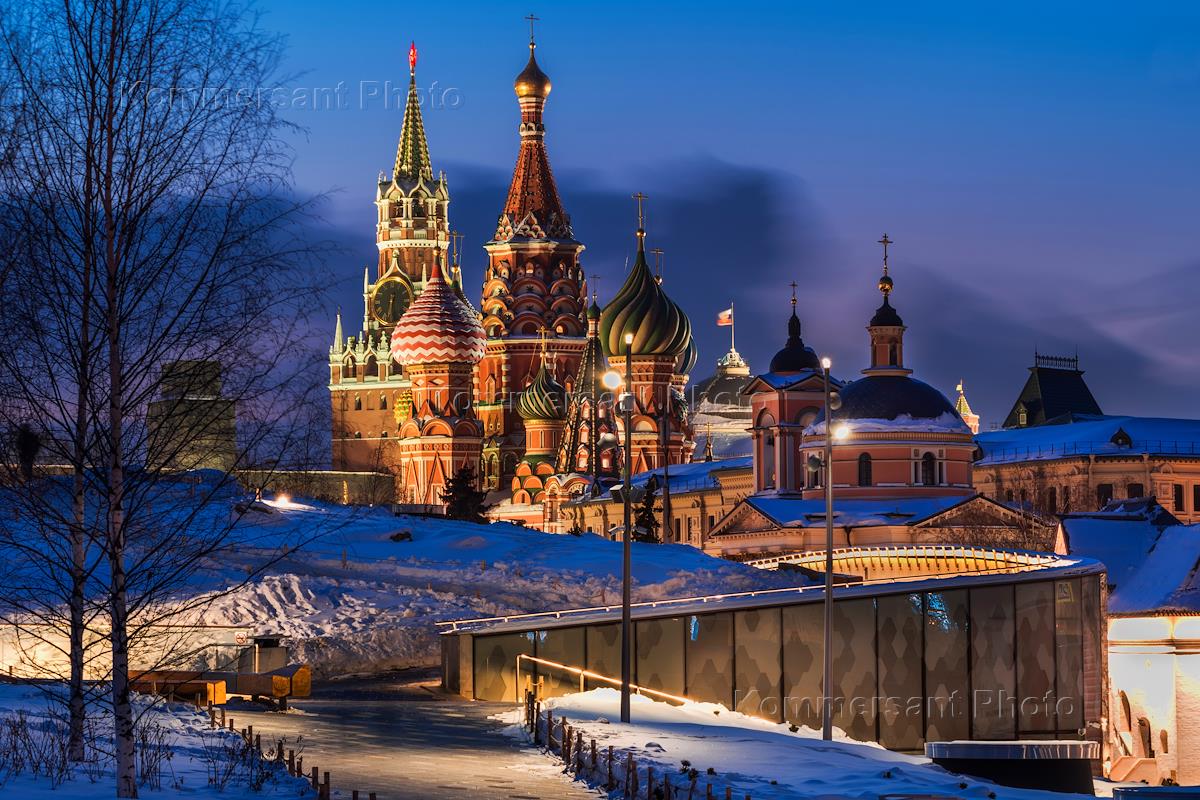 Views of Moscow. Zaryadye Park. St. Basil's Cathedral.
