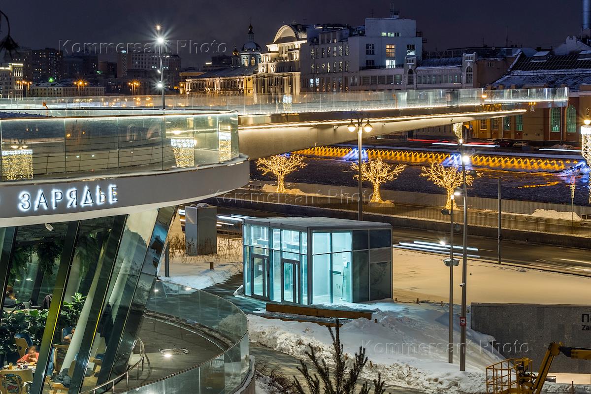 Views of Moscow. Zaryadye Park. The glass bridge over the Moscow River.