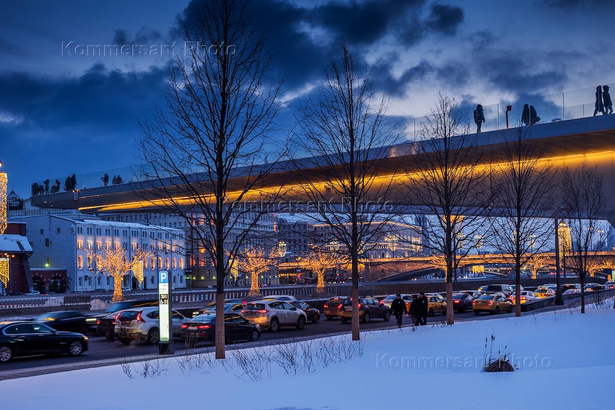 Views of Moscow. Zaryadye Park. The glass bridge over the Moscow River.