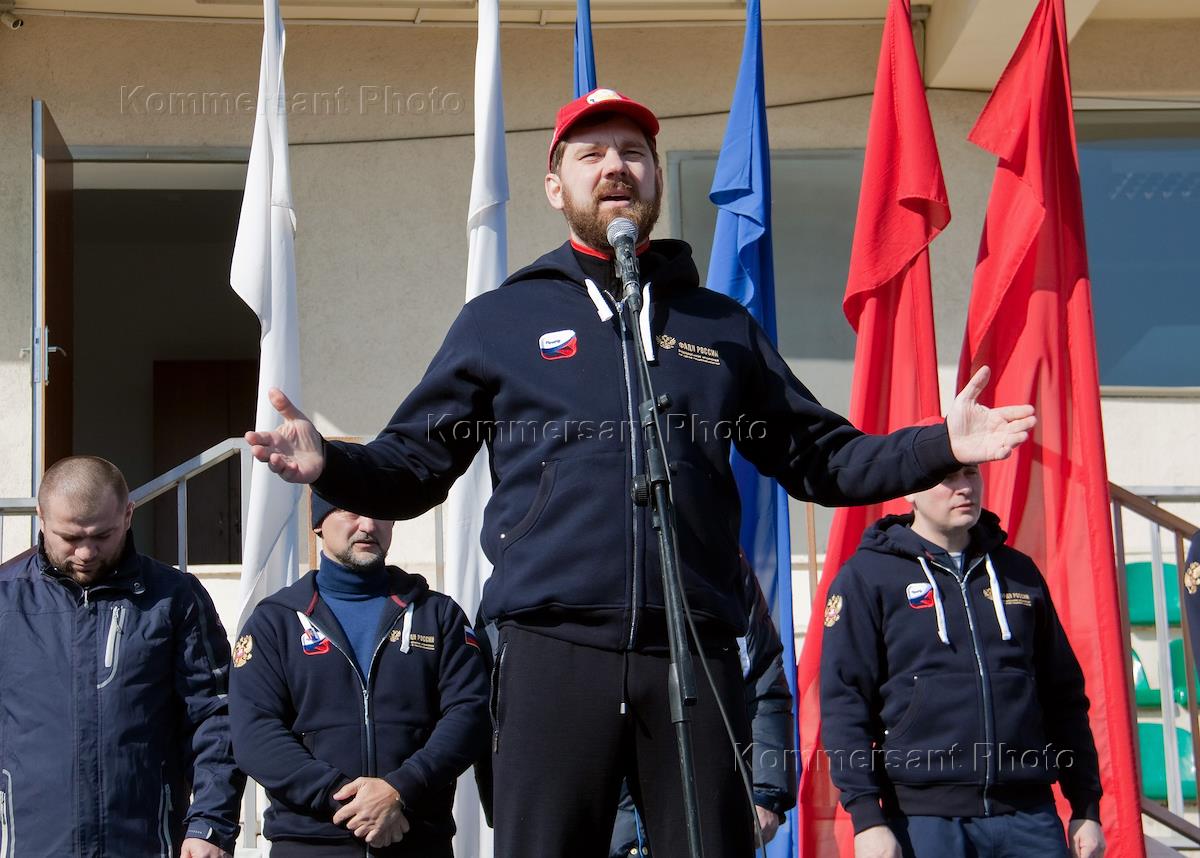Russian interethnic exercise "180318: We choose a strong country" was held at the Elena Isinbayeva Trud stadium. Dagestan Prime Minister Artyom Zdunov (left) during a rally.