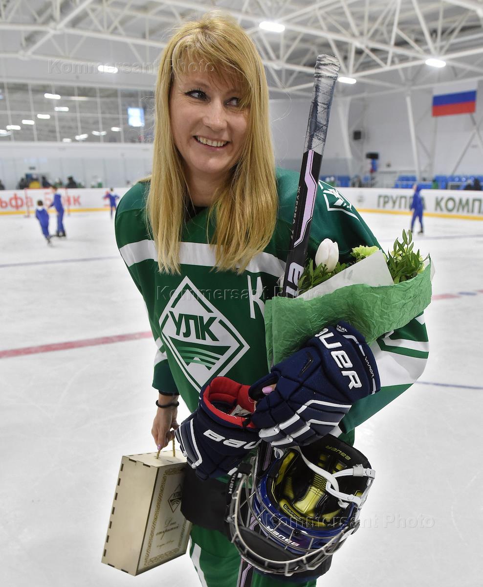 Первый заместитель председателя комитета Государственной думы России по международным делам Светлана Журова (справа) на хоккейном матче между командой "Устьянской лесоперерабатывающей компании" (УЛК) "УЛК" и командой "Легенды хоккея", посвященного открытию Ледового дворца в селе Березник.