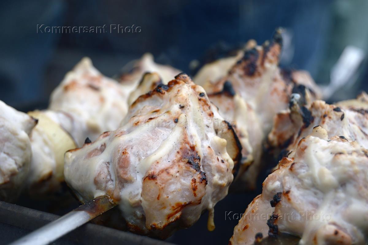 Жанровая фотография. Приготовление шашлыка у гаража.
