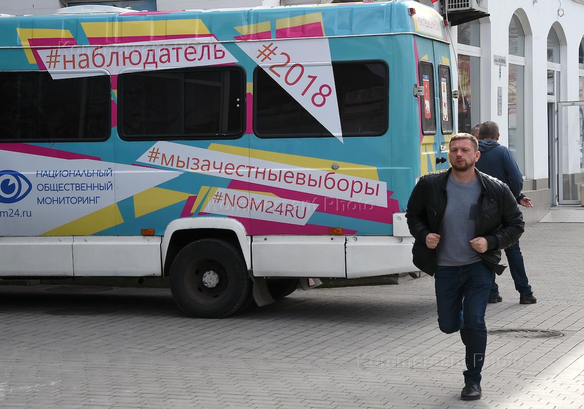 Жанровая фотография. Подготовка к выборам президента России. Предвыборная агитация на кузове маршрутного такси.