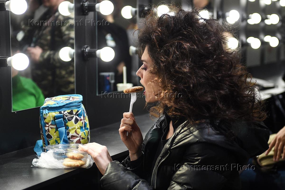 Неделя моды Mercedes-Benz Fashion Week Russia (сезон осень-зима 2018-2019) прошла в ЦВЗ "Манеж". Модели перед показом.