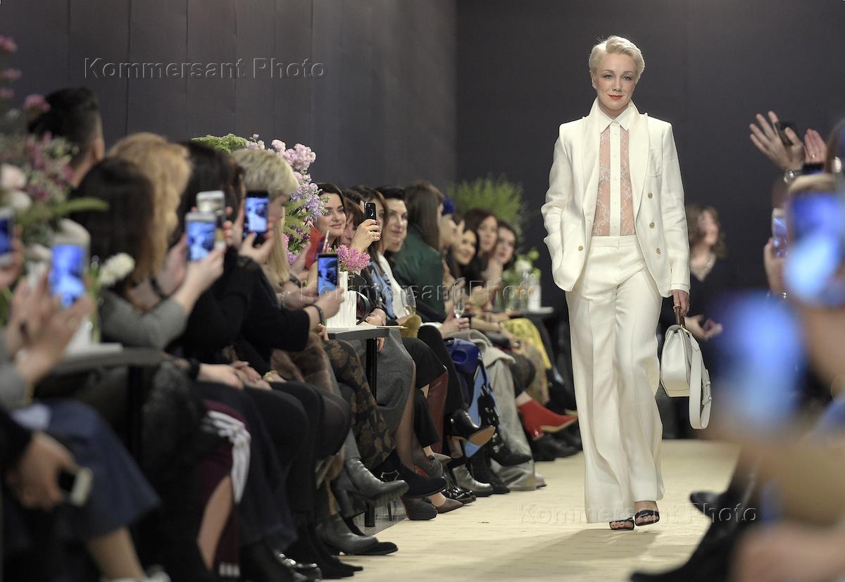 Церемония открытия флагманского бутика Max Mara прошла в торговом центре "Весна" на улице Новый Арбат. Актриса Екатерина Вуличенко во время концептуального показа коллекции Весна/Лето 2018.