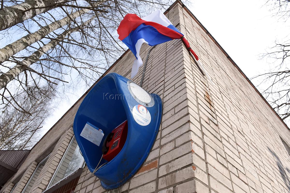 Виды поселка Шапки Ленинградской области. Уличный телефон-автомат.