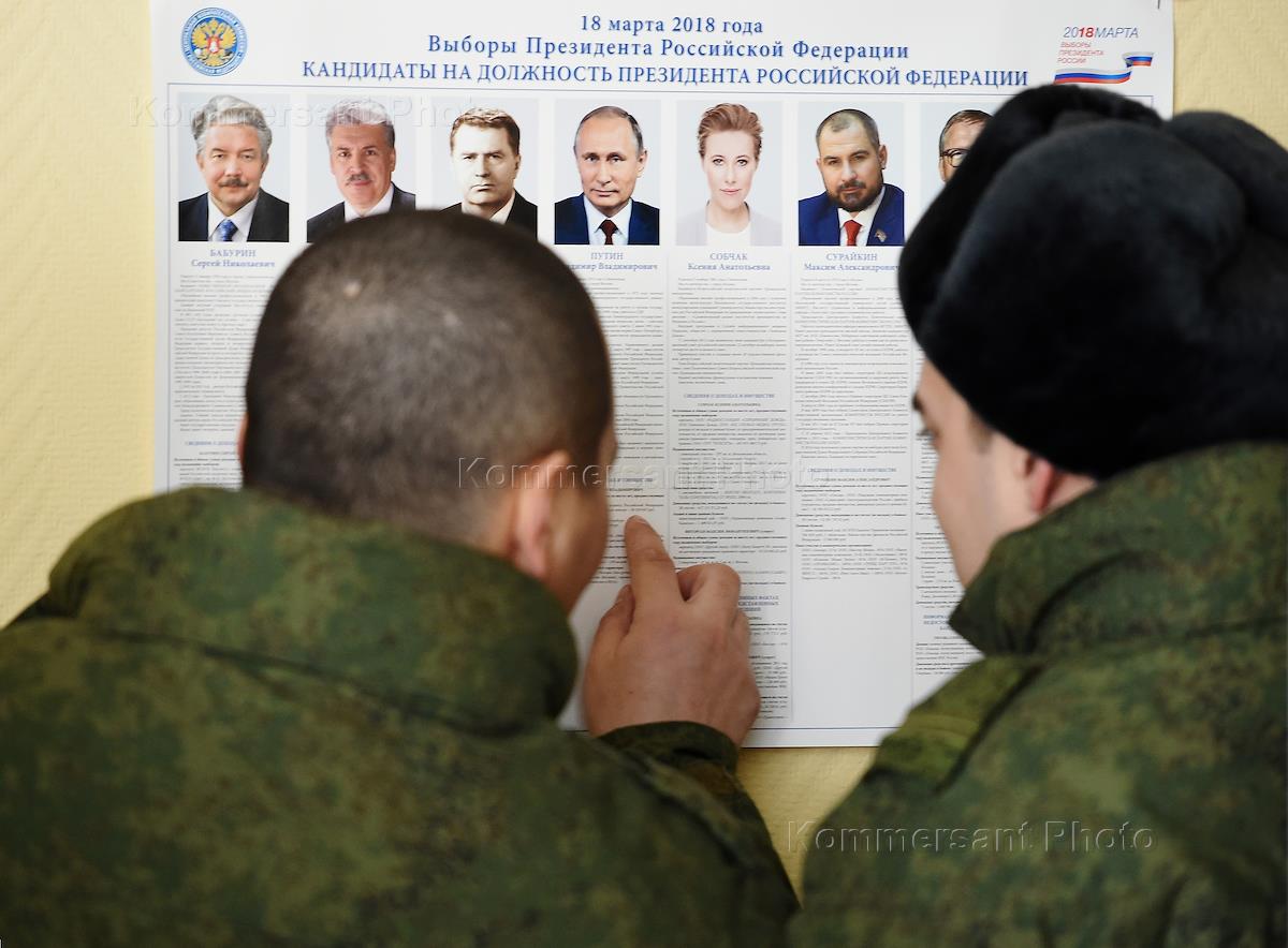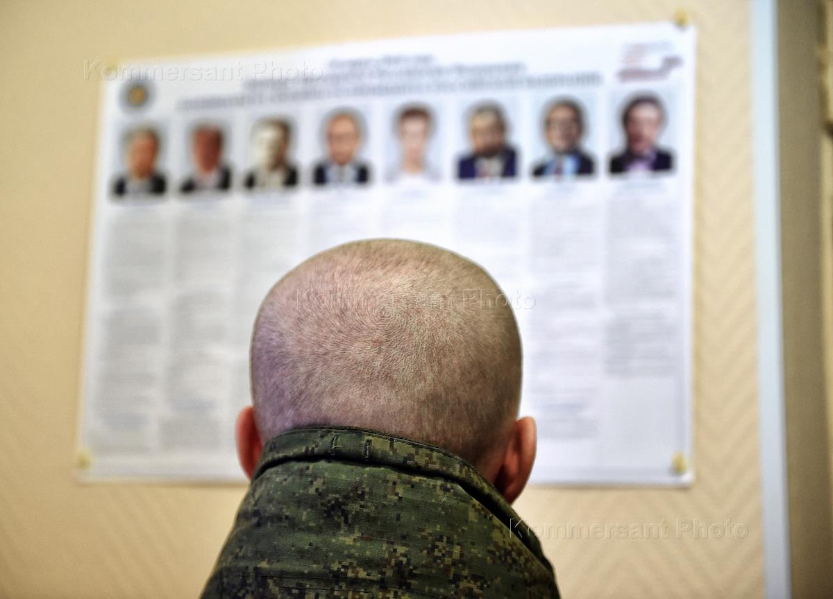 Выборы президента России. Голосование военнослужащих на избирательном участке.