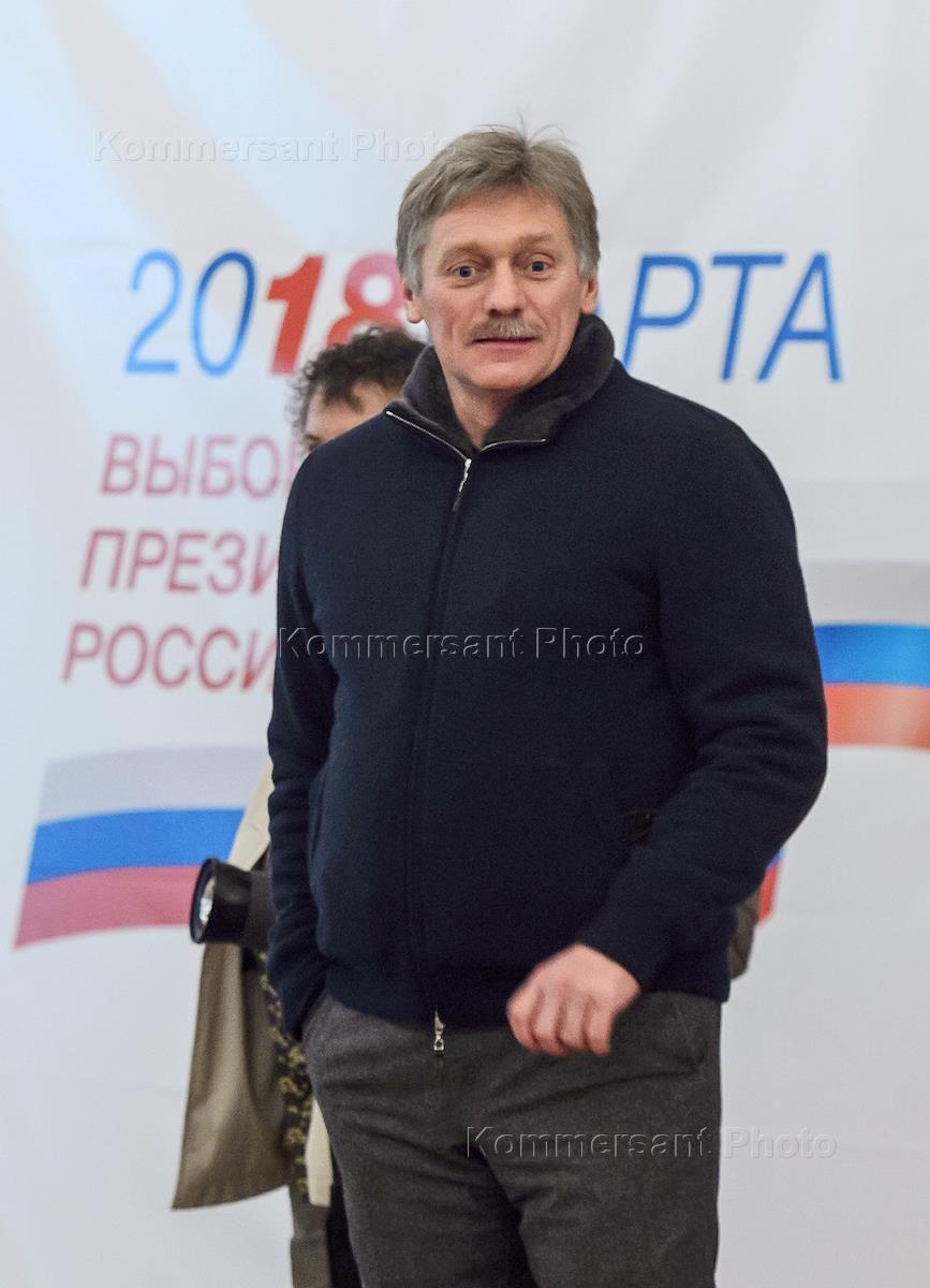 Выборы президента России. Заместитель руководителя администрации президента России, пресс-секретарь президента Дмитрий Песков на избирательном участке.