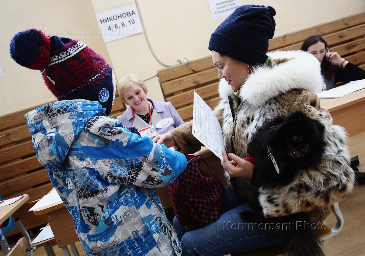 Выборы президента России. Избиратели на избирательном участке.