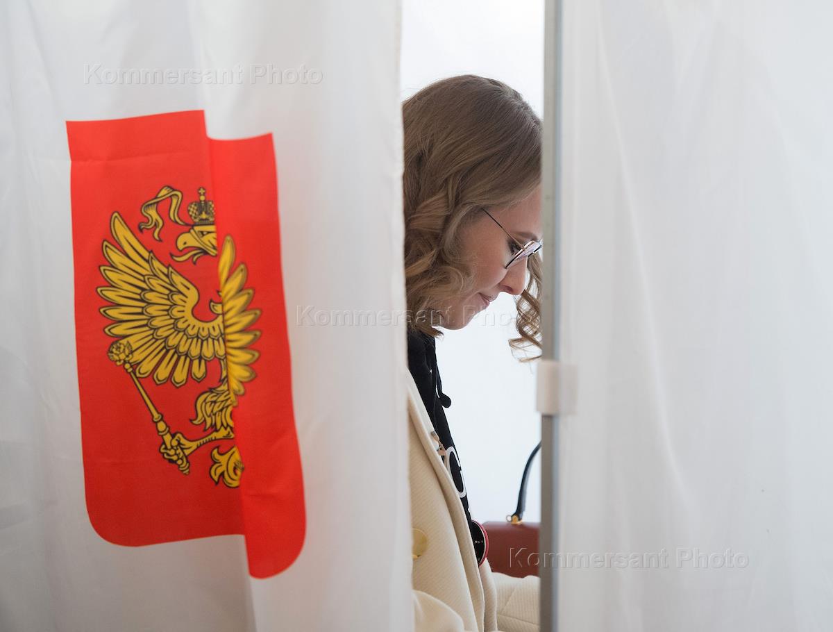 Presidential elections of Russia. Presidential candidate from the party "Civil Initiative" Ksenia Sobchak at the polling station number 158 in the Children's Music School named after L. Beethoven.