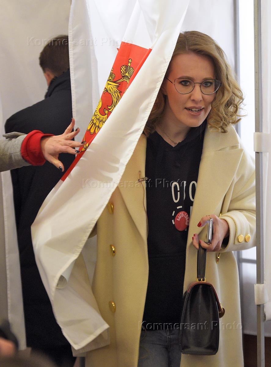 Выборы президента России. Кандидат на пост президента России от партии "Гражданская инициатива" Ксения Собчак во время голосования на избирательном участке № 158 в Детской музыкальное школе (ДМШ) имени Л.Бетховена.