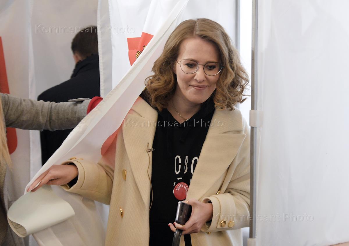Выборы президента России. Кандидат на пост президента России от партии "Гражданская инициатива" Ксения Собчак во время голосования на избирательном участке № 158 в Детской музыкальное школе (ДМШ) имени Л.Бетховена.