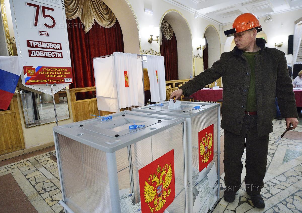 Выборы президента Россиии. Работники ПАО "Мечел" во время голосования на избирательном участке в Доме культуры (ДК) Челябинского металлургичесого завода (ЧМЗ).
