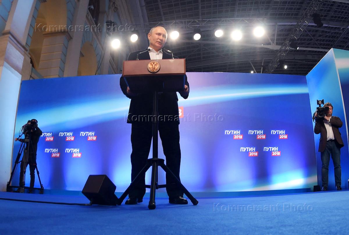 Presidential elections in Russia. Presidential candidate Vladimir Putin at his headquarters.