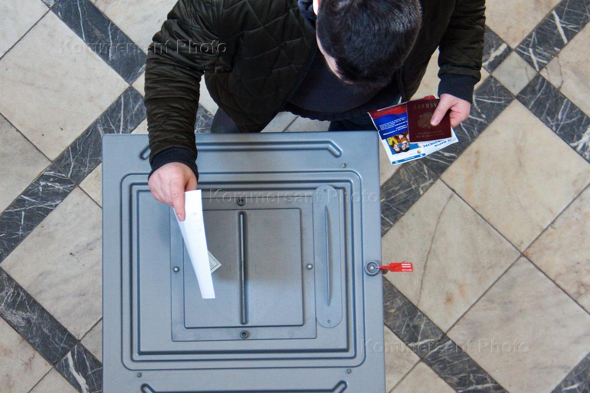 Выборы президента России. Избиратели во время Голосования на избирательном участке.