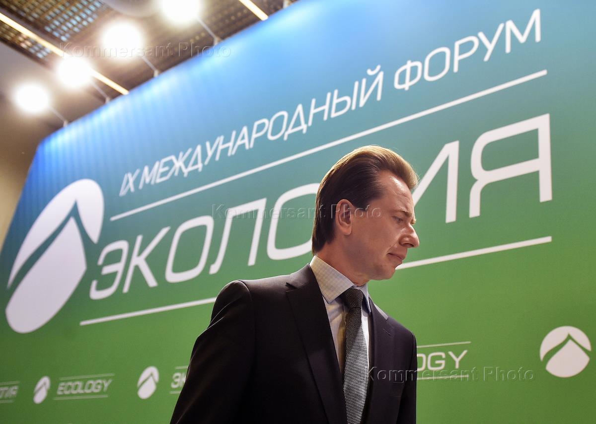 Пленарное заседание "Государственная политика в сфере охраны окружающей среды в Российской Федерации" в рамках IX-го международного форума "Экология" прошло в конгресс-парке гостиницы "Редиссон-Ройал. Москва". Руководитель департамента природопользования и охраны окружающей среды города Москвы Антон Кульбачевский во время заседания.