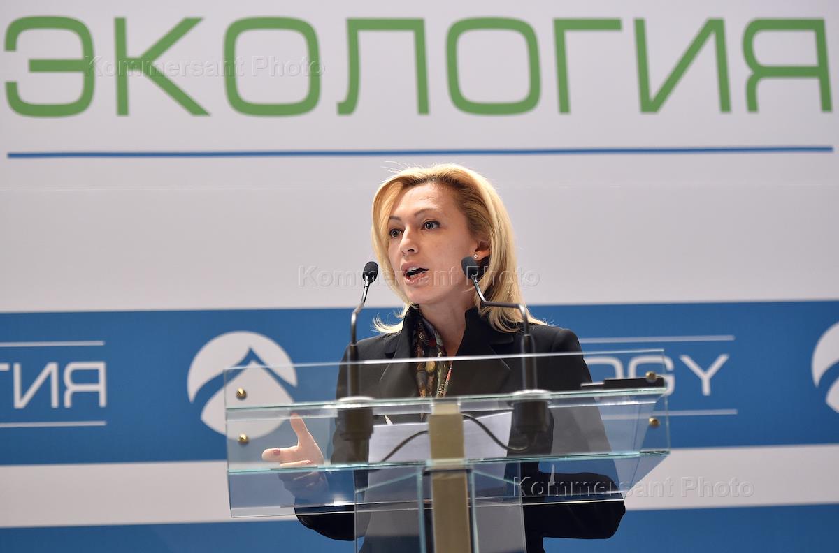 Пленарное заседание "Государственная политика в сфере охраны окружающей среды в Российской Федерации" в рамках IX-го международного форума "Экология" прошло в конгресс-парке гостиницы "Редиссон-Ройал. Москва". Заместитель председателя Государственной думы России Ольга Тимофеева во время заседания.