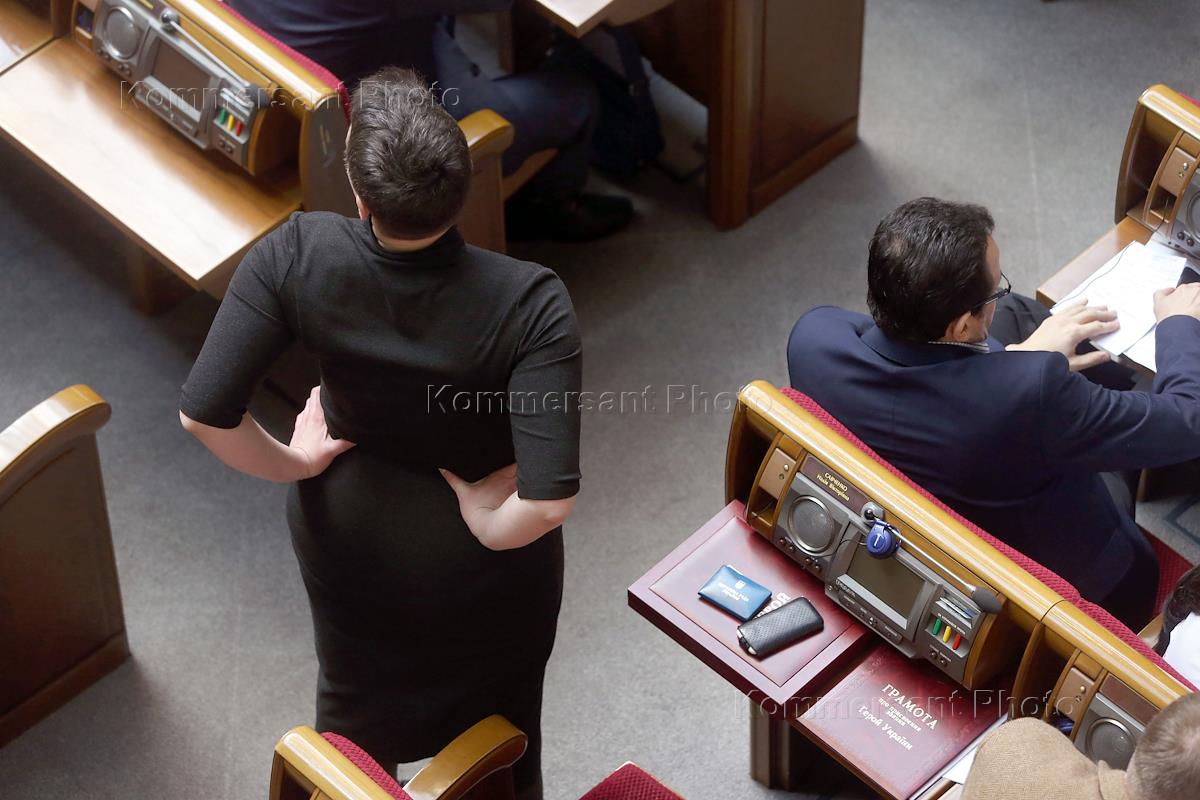 Голосование в Верховной Раде Украины (ВРУ) по вопросу лишения депутата ВРУ Надежды Савченко неприкосновенности и ее ареста по подозрению в подготовке теракта. Депутат ВРУ Надежда Савченко во время заседания.