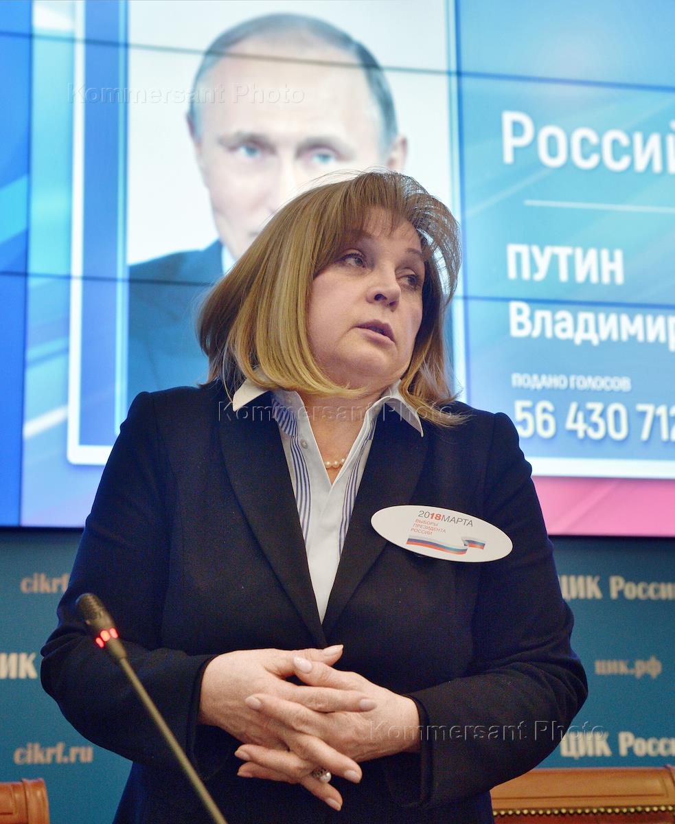 A meeting of the Central Election Commission (CEC) of Russia where the official results of presidential elections were announced. Chairman of CEC of Russia Ella Pamfilova during the meeting.