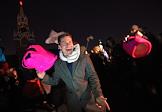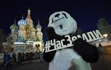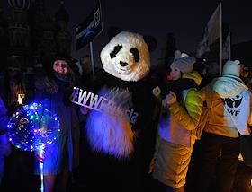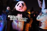 Ежегодная экологическая акция Всемирного фонда дикой природы (WWF) "Час Земли". Участники акции на Красной площади.