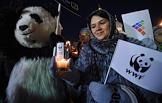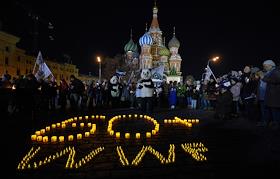 Ежегодная экологическая акция Всемирного фонда дикой природы (WWF) "Час Земли" на Красной площади.