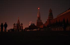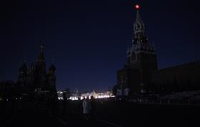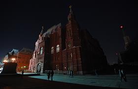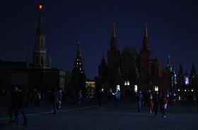 Ежегодная экологическая акция Всемирного фонда дикой природы (WWF) "Час Земли" в Москве. Исторический музей и Арсенальная башня Московского кремля.