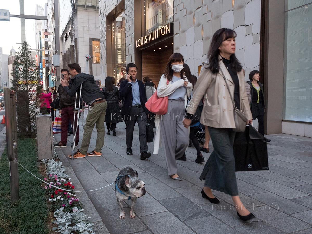 Виды Токио. Район Гиндза. Собака в ожидании хозяина у салона Louis Vuitton.