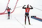 Кубок мира-2017/18 по биатлону. 9-й этап. Российский биатлонист Максим Цветков (справа) во время соревнования.