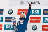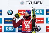 Кубок мира-2017/18 по биатлону. 9-й этап. Российская биатлонистка Светлана Миронова во время церемонии награждения.