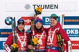 Кубок мира-2017/18 по биатлону. 9-й этап. Слева направо: норвежский биатлонист Эрленн Бьентегор, российский биатлонист Максим Цветков и норвежский биатлонис Йоханнес Бе во время церемонии награждения.