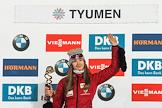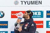 Кубок мира-2017/18 по биатлону. 9-й этап. Французский биатлонист Мартен Фуркад во время церемонии награждения.