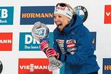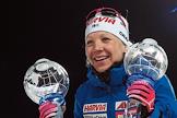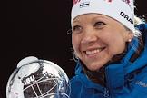 Кубок мира-2017/18 по биатлону. 9-й этап. Финская биатлонистка Кайса Мякяряйнен во время церемонии награждения.