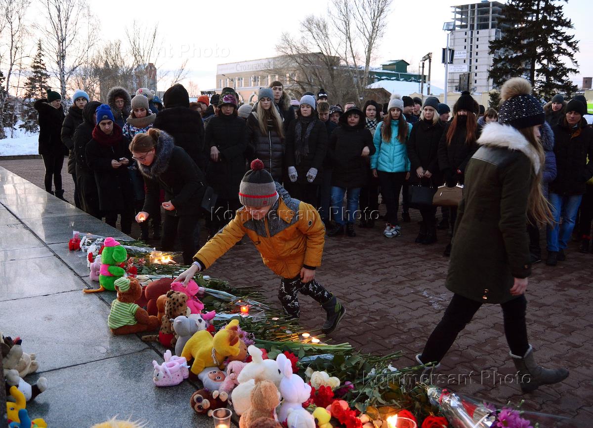 Action in memory of people who died in the fire in the mall "Winter Cherry" in Kemerovo was held in Barnaul.