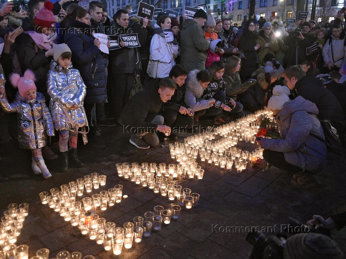 Акция памяти погибших при пожаре в ТРЦ "Зимняя вишня" в Кемерово на Пушкинской площади.